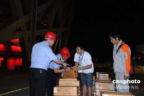 將在九月六日晚上演的殘奧會(huì)開幕式,主會(huì)場鳥巢將呈現(xiàn)宇宙星光的綺麗場景,焰火將打出流星等特殊星光造型,讓觀眾沿著流光溢彩的星光大道,步入北京殘奧會(huì)的“歡樂時(shí)空”。目前,鳥巢煙花已經(jīng)全部準(zhǔn)備就緒。圖為工作人員在殘奧會(huì)開幕前夕在鳥巢安裝煙花。中新社發(fā) 熊迪 攝