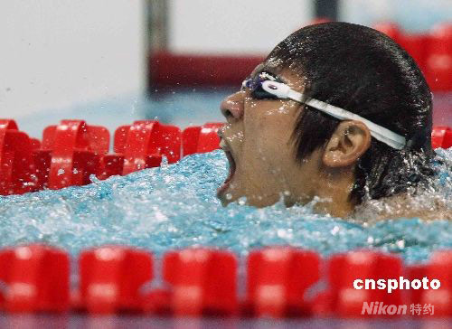9月7日,在北京殘奧會(huì)男子100米自由泳-S3級別決賽中,中國選手杜劍平以1分35秒21的成績摘得金牌并打破世界紀(jì)錄,這是中國軍團(tuán)在本屆殘奧會(huì)上的首枚金牌。中新社發(fā) 任晨鳴 攝
