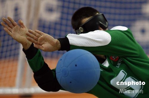 9月14日,北京殘奧會(huì)盲人門球男子金牌爭奪戰(zhàn)中,中國隊(duì)9:8戰(zhàn)勝立陶宛獲得冠軍。中新社發(fā) 杜洋 攝