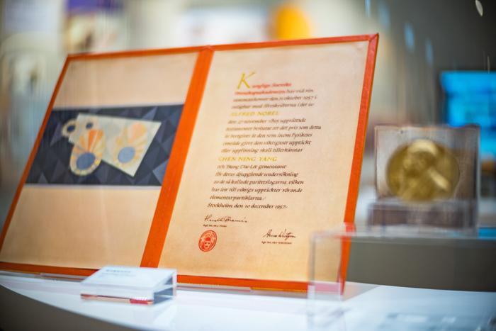 香港中文大學校史館展示楊振寧獲得的諾貝爾獎證書、獎章