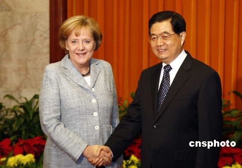 圖:胡錦濤會(huì)見德國總理默克爾