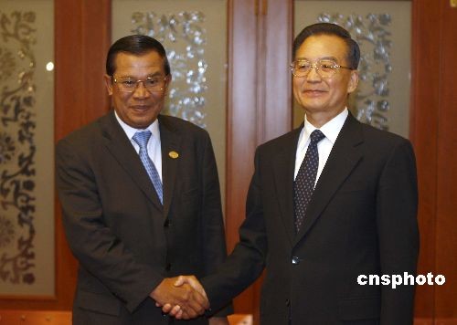 圖:溫家寶會(huì)見柬埔寨首相洪森