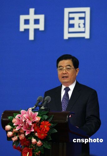 圖:胡錦濤與日本首相麻生太郎出席招待會(huì)