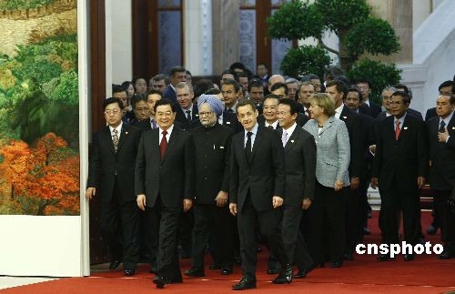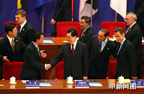 胡錦濤、溫家寶與出席亞歐首腦會(huì)議各國領(lǐng)導(dǎo)人合影