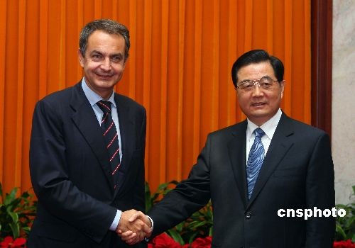 圖:胡錦濤會(huì)見西班牙首相薩帕特羅