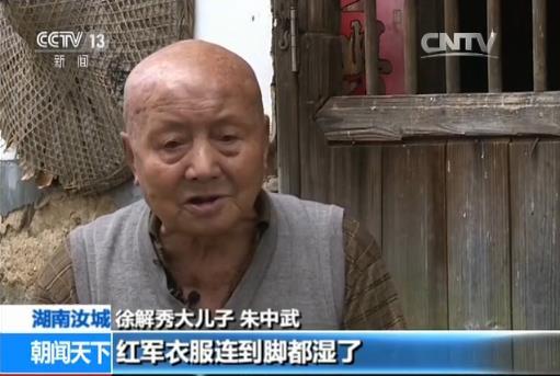徐解秀大兒子朱中武:我媽媽看到這個天氣下雪下雨,紅軍衣服都濕了,進屋來就趕快燒起水給她們洗腳、洗澡,燒好水以后就煮飯給她們吃。