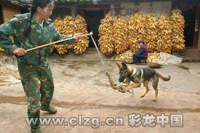 因為家中的男人們要忙于農(nóng)活,于是每天馴養(yǎng)犬的工作,也就落到了村中女子的肩上。她們每天都要和犬親密接觸3個多小時,為了方便訓犬,早已經(jīng)將這當作一份事業(yè)的農(nóng)婦們,還專門置辦了統(tǒng)一樣式的迷彩裝。矯健的身影、燦爛的笑容,配合著專業(yè)的訓練口號,于是,村中便常常出現(xiàn)農(nóng)村婦女集體訓犬的壯觀場面。