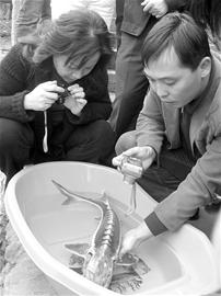 當(dāng)?shù)貪O政管理部門和水產(chǎn)保護(hù)大隊(duì)工作人員迅速趕到,經(jīng)觀察,初步認(rèn)定該魚是和中華鱘一樣珍貴的國家一級保護(hù)野生動(dòng)物達(dá)氏鱘,遂將該魚送到躉船漁艙喂養(yǎng),請有關(guān)專家作進(jìn)一步鑒定。
