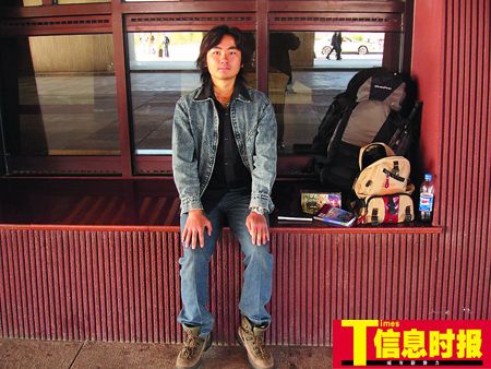 “騎著一輛殘舊的單車,穿著灰色的牛仔衣、深藍(lán)色的牛仔褲,長長的頭發(fā)隨風(fēng)飄散,胡子拉碴一張黝黑的臉!边@就是大學(xué)生朱金祿流浪中的寫照。