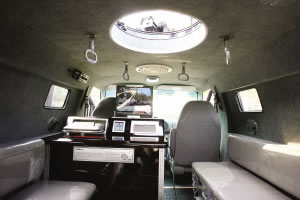 “除了功能上的特殊性,這輛車還裝備了很多高科技裝備!”張國強介紹說,除駕駛員外,這輛全封閉的車子可以搭載12名突擊隊員,但這樣一來,換氣就成了問題。所以,在該車中部天窗附近,還增設(shè)了一處特制的換氣扇,保證了車內(nèi)充足的氧氣量;其次,該車還配備了特制的逆變電源,就算是車子在停止?fàn)顟B(tài),通過這種特殊的設(shè)備,12伏的電壓也能在瞬間轉(zhuǎn)變?yōu)?20伏電壓,以保證車內(nèi)電腦、監(jiān)控屏幕等電子設(shè)備正常工作。