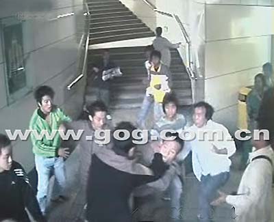貴州大學(xué)藝術(shù)學(xué)院大一學(xué)生陳晶,貴陽(yáng)市政工程管理處地下通道管理所張駿等三位保安在紫林庵地下通道合力擒下一名在街頭搶劫手機(jī)的嫌犯后,遭到對(duì)方7名同伙圍毆,陳晶多處受傷,張駿一部?jī)r(jià)值1000余元的手機(jī)被搶?zhuān)鴩^(guān)市民全都袖手旁觀(guān)。