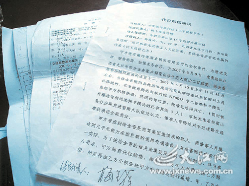 11月7日,徐金香的兒子鐘擁軍告訴記者,他們親屬對(duì)于這張《代位賠償協(xié)議》非常不滿。因?yàn)楫?dāng)鐘履玲帶著賠償協(xié)議和16萬多的賠償金回到九江后,親屬們拿到協(xié)議書一看,發(fā)現(xiàn)了讓人不滿的條款。