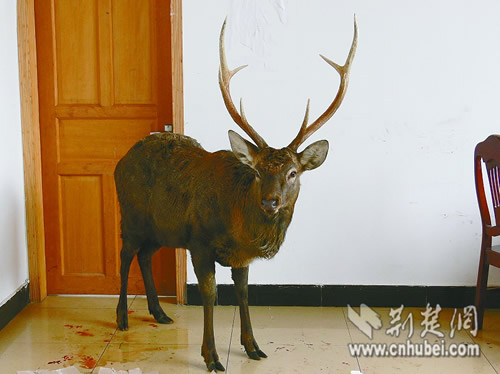 18日下午1點(diǎn)半,位于神農(nóng)架牛場(chǎng)坪的滑雪場(chǎng)辦公室突然闖進(jìn)一個(gè)不速之客,一頭重約100公斤的大型鹿科動(dòng)物因逃避猛獸追捕向人類求助。