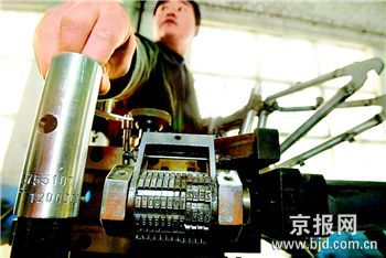 今天上午,北京自行車刻制編碼現(xiàn)場(chǎng)會(huì)在石景山舉行。在一家專門(mén)生產(chǎn)運(yùn)動(dòng)型自行車的企業(yè)廠房?jī)?nèi),記者看到,工人正使用刻碼機(jī)往自行車的前臉管或三通管上刻制15位的全國(guó)統(tǒng)一編碼。因15位編碼較長(zhǎng),所以均刻制成雙層。企業(yè)負(fù)責(zé)人告訴記者,編碼的前4位是向編碼管理部門(mén)申請(qǐng)的企業(yè)代碼,后面則是車種、流水線等號(hào)碼。