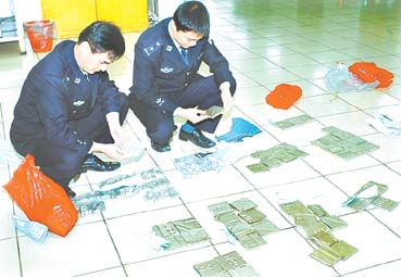 10月18日,一名姓梁的澳門女旅客從拱北口岸旅檢通道進(jìn)境時(shí),引起拱北海關(guān)旅檢關(guān)員的注意。關(guān)員依法對(duì)其進(jìn)行檢查,結(jié)果在該旅客的腹部、腿部發(fā)現(xiàn)用透明膠布捆綁著10塊重金屬,重13.5千克,均是金屬鎳。走私鎳這種少見(jiàn)的稀有金屬,引起了海關(guān)人員的關(guān)注。隨后幾天,拱北海關(guān)又查獲了同樣的走私鎳塊案件,單次走私量都在10千克左右。