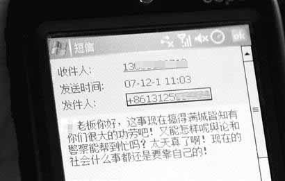 令人啼笑皆非的是,就在12月1日中午11時3分,自以為聰明過人的周某,還向受害人發(fā)短信,奚落警方和媒體,并繼續(xù)索要錢財:“這事現(xiàn)在搞得滿城皆知有你們很大的功勞吧!又能怎樣呢?輿論和媒體能幫到忙嗎?太天真了!現(xiàn)在的社會什么事都還是要靠自己的!”