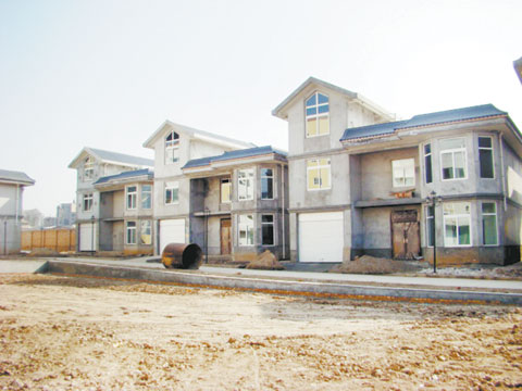 藍田縣國土資源局新家屬院位于該縣黃金地段的北環(huán)路邊、汽車客運站附近。群眾反映的9棟住宅就建在該局的新家屬院里。記者來到這里時,兩棟家屬樓和9棟“低矮建筑”都已完工,已經(jīng)進入裝修階段。家屬區(qū)門房墻上張貼的一份蓋有“藍田縣國土資源局物業(yè)辦”印章的《通知》顯示,這個小區(qū)11月12日給住戶發(fā)了鑰匙,11月17日試水。記者看到,9棟“低矮建筑”都是青灰色仿古屋頂,同一品牌的防盜門,一層都建有車庫,不僅外觀完全一致,面積大小也完全相同。一位正在裝修的該縣國土局工作人員的家屬告訴記者,兩棟單元樓每戶130多平方米,是集資建房;那些“別墅”是給局領(lǐng)導(dǎo)修建的住房,是3層建筑,三四百平方米。有知情人說,國土局里并沒有9名局級干部,多余的“別墅”是給縣上領(lǐng)導(dǎo)修建的。私人要蓋這樣的房屋費用會低一點,但至少也要花30多萬元。
