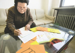 說(shuō)到去年長(zhǎng)春舉辦亞冬會(huì),姜淑蘭就想志愿帶外國(guó)友人看看美麗的長(zhǎng)春,但對(duì)外語(yǔ)一竅不通,所以這個(gè)愿望只能作罷。直到兩個(gè)月天前發(fā)生的一件事情,才又堅(jiān)定了老人學(xué)英語(yǔ)的決心。那天一個(gè)黑人小伙子焦急地跑到老人面前,嘰里呱啦地說(shuō)了一通,老人很無(wú)奈地?fù)u搖頭。老人當(dāng)時(shí)就想,要是自己懂英語(yǔ),那該有多好。所以從第二天開(kāi)始,姜淑蘭找孫女要來(lái)了英語(yǔ)課本,自己在家閉門造車,老人把26個(gè)英文字母倒是認(rèn)全了,但字母組合到一起,老人就咋也整不明白了。所以老人開(kāi)始上街尋找外語(yǔ)學(xué)習(xí)班。但沒(méi)想到找到的前兩個(gè)學(xué)習(xí)班都因?yàn)槔先四昙o(jì)太大,沒(méi)有接收她。后來(lái)老人就將自己的年齡隱瞞了10歲,但仍然沒(méi)有人收她。老人依舊倔強(qiáng)地認(rèn)為自己不但能學(xué)會(huì)英語(yǔ),并且能和年輕人一樣能學(xué)好。 (記者 蔡錚 陶彬)