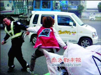 據(jù)目擊者介紹,約半個(gè)小時(shí)后,拖車人員趕到現(xiàn)場(chǎng),該婦女看到自己的車輛將要被拖走,情緒顯得更加激動(dòng),該女子一邊阻止拖車人員拖車,一邊破口大罵執(zhí)勤民警,繼而動(dòng)手扭打,追打民警至馬路中央,扯住民警的制服,造成民警頭部、手腕、前胸等部位受傷。“太兇了,她逮著人就打!”一個(gè)現(xiàn)場(chǎng)目擊者稱,該女子就像發(fā)了狂一樣,逮著誰打誰,拖車工作人員多次上前勸阻,該女子一律拳腳相向,民警隨即通過總值請(qǐng)求110協(xié)助。110民警到達(dá)現(xiàn)場(chǎng)后,制止了事件的延續(xù)。