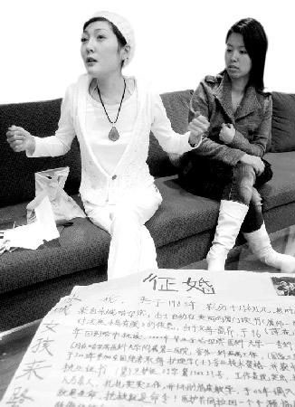 她說,這些要求是根據(jù)自身?xiàng)l件提出的。她身高1.65米。她出示了護(hù)理證書、工資卡等證明。她是哈爾濱某醫(yī)院的護(hù)士,并取得專科升本科的證書。她說她在哈爾濱擁有一套單身公寓,價(jià)值25萬元,有一輛上海華普兩廂汽車,車號為黑AC1998!拔矣蟹坑熊嚕髮Ψ接蟹坑熊,應(yīng)該也不過分!彼f。