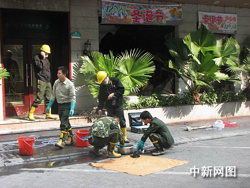 記者發(fā)現(xiàn),消防人員正在餐廳里面勘查。名典西餐廳隔壁的桂鴻茶餐廳經(jīng)營者方先生是第一個發(fā)現(xiàn)火情并報警的人。據(jù)他介紹,他于十二日傍晚五時零八分發(fā)現(xiàn)名典西餐廳二樓冒煙起火,二分鐘后他撥打報警電話,十幾分鐘后消防人員趕到現(xiàn)場,消防人員用了十五分鐘將大火撲滅。據(jù)方先生介紹,火災(zāi)發(fā)生時有二男一女用凳子砸破玻璃窗從二樓跳下,一男子摔在路邊小車上,腿部與腰部受傷,目前已經(jīng)脫離危險,另有一男子還在樟木頭人民醫(yī)院重癥監(jiān)護(hù)室,未脫離危險。