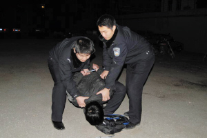1月10日23時(shí)許,佳榮里派出所民警正在劉家房子前大街巡邏,突然聽到有人大喊捉賊,巡邏民警立即驅(qū)車前往事發(fā)地,見一名年輕男子發(fā)了瘋一樣向一條胡同內(nèi)拼命逃竄。民警立即用無(wú)線電臺(tái)呼叫正在附近巡邏的村治保會(huì)人員,前后夾擊,將這名男子堵在胡同內(nèi)并將他擒獲。隨后趕到的群眾張先生講,當(dāng)晚11點(diǎn)半左右,他剛?cè)胨吐牭酱笤簝?nèi)咕咚一聲響,他立即開門,發(fā)現(xiàn)一名陌生男子正在撬鄰居的房門,他大喊一聲:“有賊!”男子見狀,翻過(guò)墻頭就跑,張先生在后面緊追,后這名男子被巡邏民警和村治保會(huì)人員當(dāng)場(chǎng)抓獲。