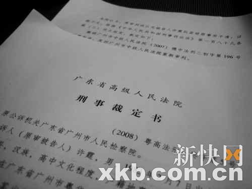 上周,對(duì)于許霆案是否發(fā)回重審,各大媒體紛紛作出各種猜測(cè)。昨日,記者從相關(guān)途徑獲得確鑿消息,廣東省高級(jí)人民法院已把《刑事裁定書(shū)》發(fā)到許霆的辯護(hù)律師手中,而許霆的父親許彩亮也經(jīng)由律師拿到刑事裁定書(shū),許霆案“發(fā)回重審”已成定局。