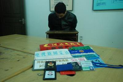 昨天上午,記者在合作路派出所內(nèi)見到了正在接受審訊的賈某。據(jù)其交代,他辦有大量的辦公證件,其中包括高速公路交警總隊(duì)的警察證(上注一級(jí)警司)、河北省交通廳督察證、河北省某新聞單位的工作證以及綠色中國(guó)網(wǎng)絡(luò)電視的采訪證。同時(shí),辦案民警從其駕駛的一輛藍(lán)鳥轎車上還搜出了元氏縣委、省交通廳、省人民檢察院等政府機(jī)關(guān)的出入證,以及綠色中國(guó)等新聞單位的采訪標(biāo)牌。
