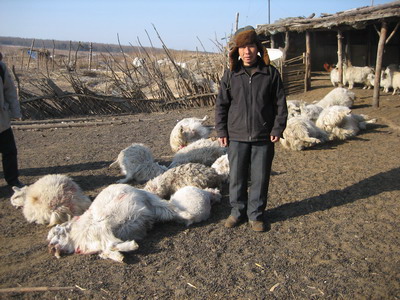 記者了解到,這次老宋損失的22只絨山羊有很多是已經(jīng)懷孕的母羊,保護局工作人員對死羊進行了登記,并表示將按標準進行補償。老宋昨天從死的大羊肚子里掏出了兩只未出生的小羊!翱尚奶哿,這兩年羊絨剛賣上價,一公斤達到400元左右,一只絨山羊好的也有600多元一只。”老宋說,一年羊產(chǎn)一次絨,在每年4月份,一只羊就能下半公斤絨。