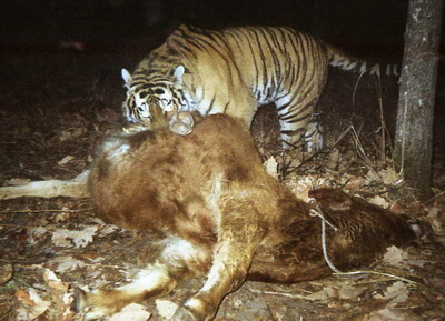 就此事,記者咨詢了從事東北虎保護工作多年的專家李志興。他說,一般情況下,東北虎一次只吃一頭牲畜,并且不會留在一個并不安全的地方這么久,這有點不符合東北虎的習(xí)性,但也有一種解釋就是東北虎咬死羊后,別的羊的騷動影響了它進食的興致,所以它一怒之下就把騷擾它的羊都咬死、嚇蒙,以換來就餐環(huán)境的安靜。