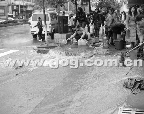 昨天上午,遵義城區(qū)洗馬路和中華路明珠閣旁主供水管道突然被凍爆,該市大半個(gè)城市30多萬(wàn)人沒(méi)水用。