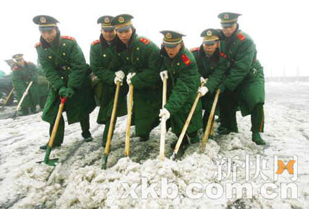 目前梅花至大橋(K24-K51)雙向結(jié)冰仍很嚴(yán)重。截至昨晚9時,因?yàn)樘靸鱿掠辏┲楸彪p向繼續(xù)封閉。從湖南郴州方面獲悉,郴州軍分區(qū)已調(diào)派裝甲車趕赴重災(zāi)路段進(jìn)行碾冰任務(wù)。由于有新冷空氣補(bǔ)充南下,粵北地區(qū)持續(xù)降溫,氣溫基本維持2℃-5℃,最低氣溫為-1.8℃,濕度達(dá)95%,同時還下起了中雨,又起了大霧,能見度不足30米。惡劣的天氣給京珠北破冰工作帶來了很大壓力。昨天,京珠投入的機(jī)械設(shè)備增到260臺套,分80個班次不停作業(yè)。這些機(jī)械包括鏟車38臺、推土機(jī)16臺,人員約1500人。昨天破冰里程已經(jīng)達(dá)到52公里,但由于下雨及路段最低溫度已降至-3.8℃,結(jié)冰始終在加劇。前晚已經(jīng)打通的南下通道,進(jìn)入晚間后再次出現(xiàn)持續(xù)降雨及氣溫迅速下降現(xiàn)象,路面再度迅速結(jié)冰,并逐步加劇,達(dá)到65公里左右。