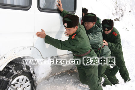 每天,官兵們都要沿著積雪覆蓋、路面結冰的山路,驅車幾十公里才能到達受災現(xiàn)場。由于天冷路滑,官兵們只能清除雪障、疏通道路后才能進發(fā),有時10多公里的路程要2個小時才到達。一到目的地,官兵們就迅速整隊集合,戴上安全帽,系上攀登繩,手拿砍刀和斧頭,背上火焰噴射器,分成若干個小組,沿著山高坡陡、積雪齊膝的小路向海拔2000多米的山上進發(fā)。