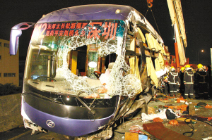 2008年2月11日1時59分,廣深高速公路南行68公里+300米處(即東莞市長安出口),發(fā)生一起大客車碰撞護欄的交通事故,造成該車司機及乘客共6人當場死亡,1人重傷,3人輕傷、8人輕微傷。