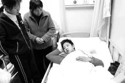 記者在泉州市第一醫(yī)院外科病房看到了年僅15歲的呂榮太,一臉稚氣未脫的他直稱頭暈,并斷斷續(xù)續(xù)地講述了事件的經(jīng)過。