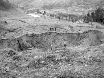 白果村楊家溝山坡上出現(xiàn) “天坑”后,當(dāng)?shù)剜l(xiāng)政府、國土所工作人員都到現(xiàn)場進(jìn)行了調(diào)查。據(jù)調(diào)查,在方圓數(shù)公里的范圍內(nèi),并沒有發(fā)現(xiàn)挖煤等采掘行為,歷史上也沒有,形成原因成了謎。目前,相關(guān)部門正在對出現(xiàn)“天坑”的原因作進(jìn)一步勘察。(文/圖黎濤歐迪勇記者 李罡)