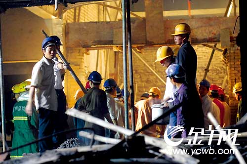 事發(fā)后,省委常委、市委書記朱小丹、市長張廣寧迅速作出批示,要求全力搶救被困人員,查明事故原因。市政府副秘書長潘安、市應(yīng)急辦主任鄧慶彪及市公安局、市公安消防局、市國土房管局、市建委、市衛(wèi)生局、市安監(jiān)局、白云區(qū)委、區(qū)政府主要領(lǐng)導(dǎo)和相關(guān)部門負責(zé)人第一時間趕到現(xiàn)場,組織開展搶險救援工作。