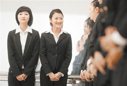 之前在外企工作的唐娜告訴記者,平常都是看到熟人時才笑,現(xiàn)在必須對視線范圍內(nèi)的每個人微笑,直到練成條件反射。而且要露出八顆牙齒,露少了不真誠,露多了不好看。很多同學都咬著筷子練習,笑得臉都僵了!皣H標準微笑就是露出8顆牙齒,‘奧運空乘’代表國家形象,你可以不用精通各國語言,但你可以用端莊大方的微笑展示我們的熱情。”