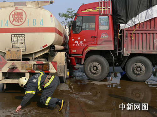 廣西南寧油罐槽車(chē)被撞泄漏一噸柴油(圖)