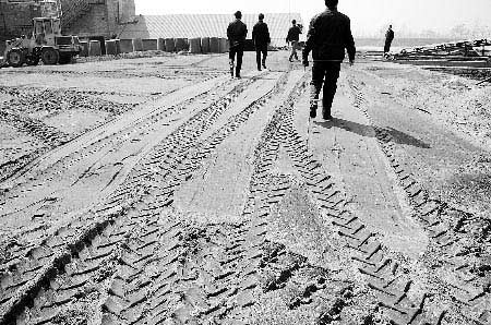 昨日上午10時許,省環(huán)保局監(jiān)察總隊負責人孫自臣帶領(lǐng)執(zhí)法隊員來到一片煙囪林立的磚窯場,穿過一條煙塵滾滾的土路后,執(zhí)法隊員看到在一堆高10多米的礬土礦石后面就是被舉報的土煉制廠。