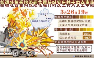 國(guó)家安全生產(chǎn)監(jiān)督管理總局副局長(zhǎng)孫華山說(shuō),吐魯番“3·26”爆炸事故是我國(guó)首次在煙花爆竹銷毀環(huán)節(jié)發(fā)生的重大安全事故。