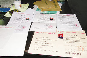 辦案人員在辦公室和資料室搜出大量的假《工程承包合同》、假軍隊(duì)公文、假公章和假軍車牌等,其中,竟還有從來(lái)不存在的《中國(guó)人民解放軍營(yíng)業(yè)執(zhí)照》一份。