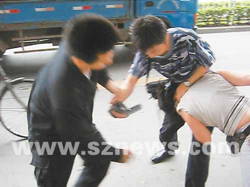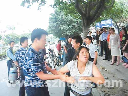 這個暴力抗法的女攤販已被帶往南頭派出所接受調(diào)查,并被處以三天拘留懲罰。同一天,桃源街道也發(fā)生了暴力抗法事件。16名綜合執(zhí)法隊隊員受傷。桃源街道黨工委書記、辦事處主任廖澍華說,在執(zhí)法時錄像的隊員比較容易受到攻擊,建議錄像時是否可以著便衣,或分開行動。(賴良青)