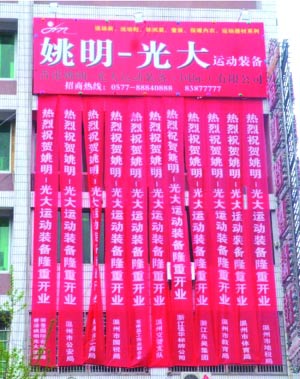 就在“最牛洗腳城”鬧得沸沸揚揚時,在溫州本地論壇上,一個名為《姚明-光大公司涉嫌掛7個溫州政府機關(guān)祝賀條幅》的帖子就像個重磅炸彈,在當(dāng)?shù)匾鹆瞬恍〉恼饎印?/p>