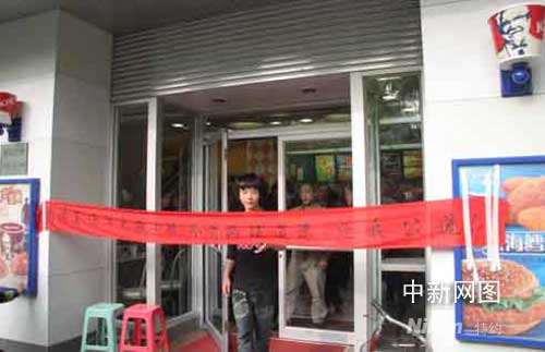 在派出所3次出警無效下,憤怒的陳女士做出了在肯德基店門口 拉橫幅攔顧客的舉動。而肯德基方面更是以鎖住店門把陳女士連同當(dāng)時還在就餐的10幾名顧客一起困在了店堂里。時間長達一個多小時。最后還是在圍觀群眾的憤怒聲中才打開店門。