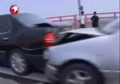 從慈溪往海鹽的大橋上,發(fā)生十車(chē)連環(huán)相撞事故。(東方衛(wèi)視截圖)
