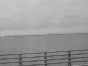 他分析,首先從照片上藍(lán)色的護(hù)欄分析,該讀者拍攝的位置剛好位于海中平臺附近,也就是大橋的中央位置。而從拍攝角度分析,相機(jī)拍攝的方向剛好與大橋垂直,也就是與橋平行的方位,從這點(diǎn)上看,無論是大橋的西邊還是東邊,都是一望無際的海面,絕對不可能出現(xiàn)任何高樓林立的城市景象。