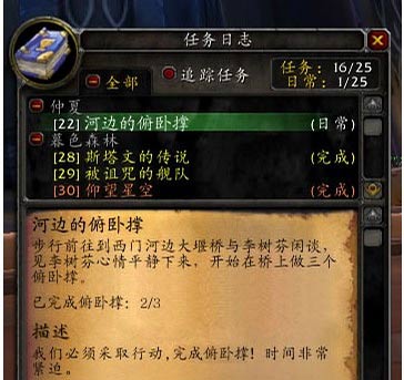由于“俯臥撐”忽然躥紅,網(wǎng)游“魔獸世界”里也隨即出現(xiàn)了一個名叫“河邊的俯臥撐”的任務(wù)日志。(來源:新快報 記者 喬麥)