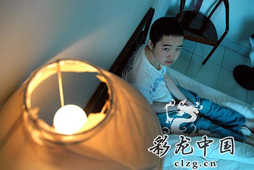 坐在床上白血病患者李萬宇 實習(xí)記者 曾永洪/作
