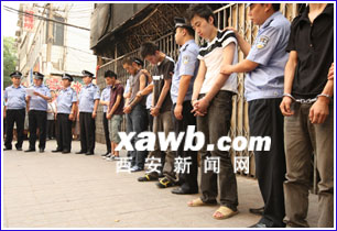 打架吃了虧,就糾集朋友,幫自己報仇;在報仇不成的情況下,又將一家網吧燒毀,給網吧造成了50余萬元的經濟損失。案發(fā)后,碑林警方迅速出擊,將涉案的5名主要嫌疑人抓獲。昨日下午,警方在案發(fā)現場,對幾名犯罪嫌疑人進行了公開處理,得到了周圍群眾的好評。